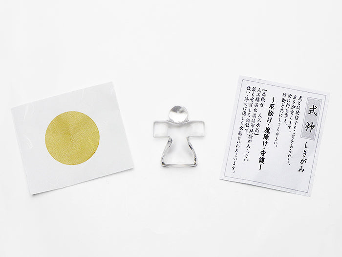 高純度の人工結晶水晶を使用した、厄除け・魔除け・守護などいつも持ち歩いていただける式神型のお守りです。