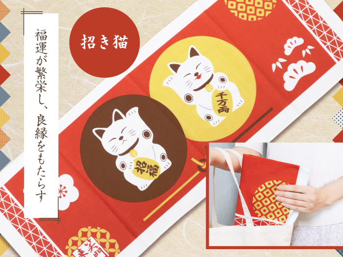 古来から伝わる縁起物やご利益のモチーフを描いた伝統的な手ぬぐいです。